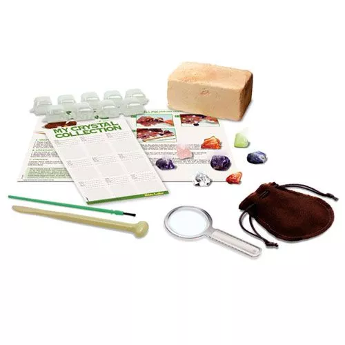 Met deze Crystal Mining opgraafkit van het merk 4M leer je meer over echte kristalen door ze zelf op te graven, te bekijken en te vertonen. Met het bijgevoegde buidelzakje, kan je de kristalen dichtbij bewaren, meenemen of als kado geven.
