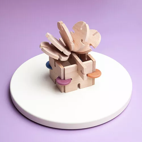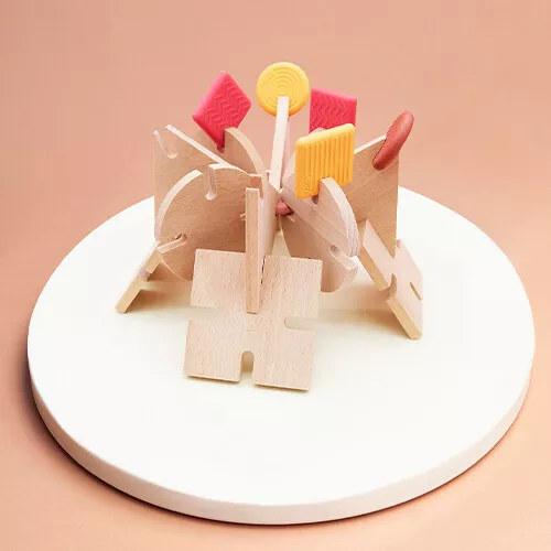 Een toren, een auto of een abstract kunstwerk; met de houten ‘Builder’ bouwset van het Poolse merk Bavvic zijn talloze unieke constructies te bouwen. Het open-einde-speelgoed laat kleine architecten en bouwers hun eigen fantasie volgen.
