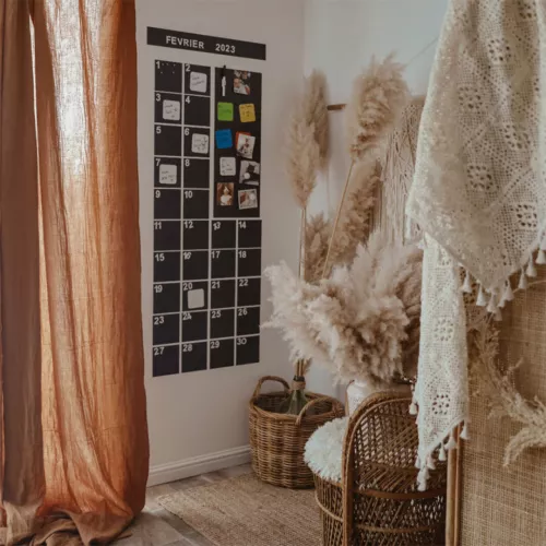 De kalender heeft aan de achterkant een zelfklevende laag, waardoor hij makkelijk te plaatsen, verplaatsen en verwijderen is. En met het minimalistisch ontwerp past de kalender perfect in elke ruimte.