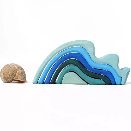 Deze houten speelset ‘Wasserwellen, klein’ van het Duitse merk Grimm’s is veelzijdig speelgoed. De watergolven in koele waterkleuren spreken kinderen direct aan.