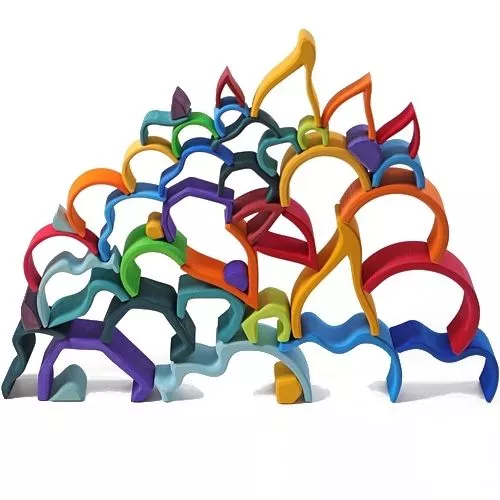 De grillige vormen prikkelen de fantasie: er kan een meer mee aangelegd worden en voor een kleine bruggenbouwer bieden ze een nieuwe brugvorm met bogen. Op zijn kant kan het als omheining bescherming bieden aan speelgoeddieren. Of wordt het een onderwaterwoning? Deze watergolven zullen altijd een onderdeel zijn van fantasierijk bouwen en spelen.