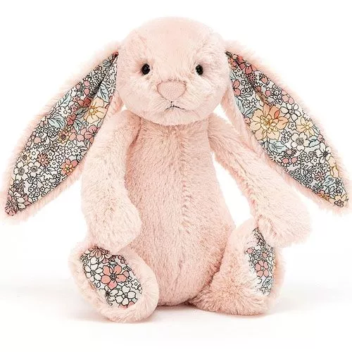 ‘Blossom Blush Bunny’ van het Engelse merk Jellycat is een vrolijk knuffelkonijn met bloemen in haar oren en onder aan haar voetjes. Het speelgoedkonijn heeft kraaloogjes, een luxe fluweelzachte lichtroze vacht en een klein roze neusje. Een knuffel om te knuffelen en om altijd bij de hand te hebben. Haar lange flaporen en slappe armen zijn gemakkelijk vast te houden.