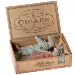 Maileg Knuffelmuis Vader En Moeder In Sigarendoosje Ruitjespyjama – 15 Cm