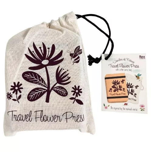 Inclusief katoenen bewaarzak. Zo kan de bloemenpers altijd mee op stap.